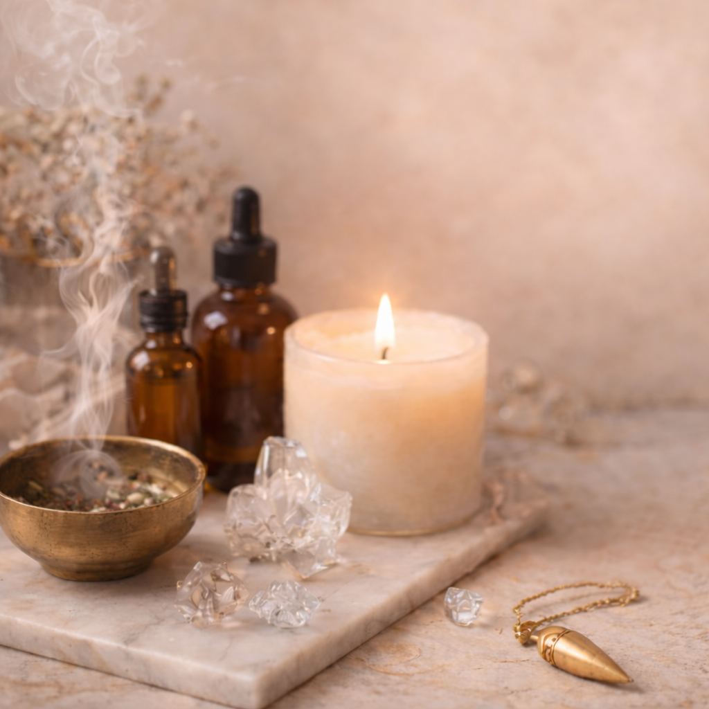 Alongside guidance, the studio offers carefully crafted formulations and ritual elements. Every texture, aroma, and ingredient is selected with intention. Every detail matters. These offerings are not meant to be displayed. They are meant to be used, felt, and lived. To pause. To center. To honor yourself. Each piece integrates seamlessly into your environment, elevating it without calling attention to itself. It is subtle luxury with impact.